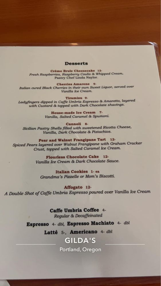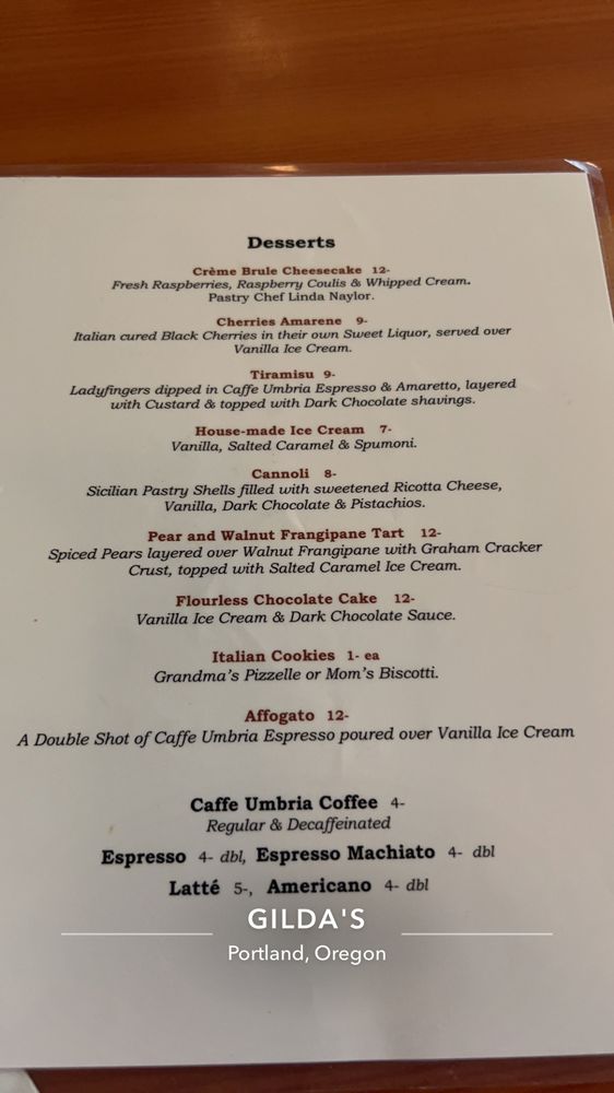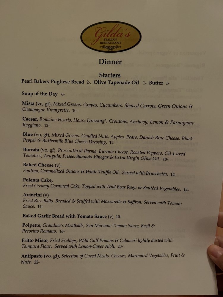 The inviting ambiance, adorned with Tuscan murals, creates a cozy setting for an intimate meal or a delightful gathering with friends. Vegetarian options abound, making it a friendly dining spot for all. Special dietary requests are graciously accommodated, ensuring every guest leaves satisfied. Whether you're indulging in our cannoli or enjoying a refreshing cocktail at happy hour, Gilda's welcomes you with warm service and unforgettable tastes. Discover your new Italian favorite today!